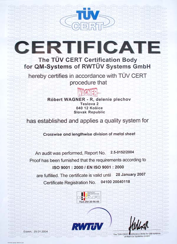 - Vyhlásenie zhody betonárska oceľ – tyče , zvitky WAGNER